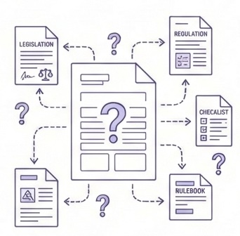 Requirements live in regulations, email threads, and people's heads. Every compliance check starts with working out what's actually needed.